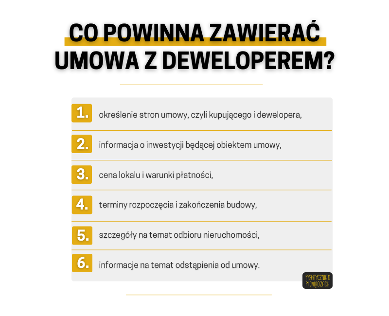 Wspomniane prawo to ustawa deweloperska z 2012 roku. Miała ona na celu objęcie kupujących pewną ochroną, zobowiązując obie strony transakcji do jej przestrzegania. Umowa z nabywcą musi być sporządzona ściśle według treści tej ustawy.