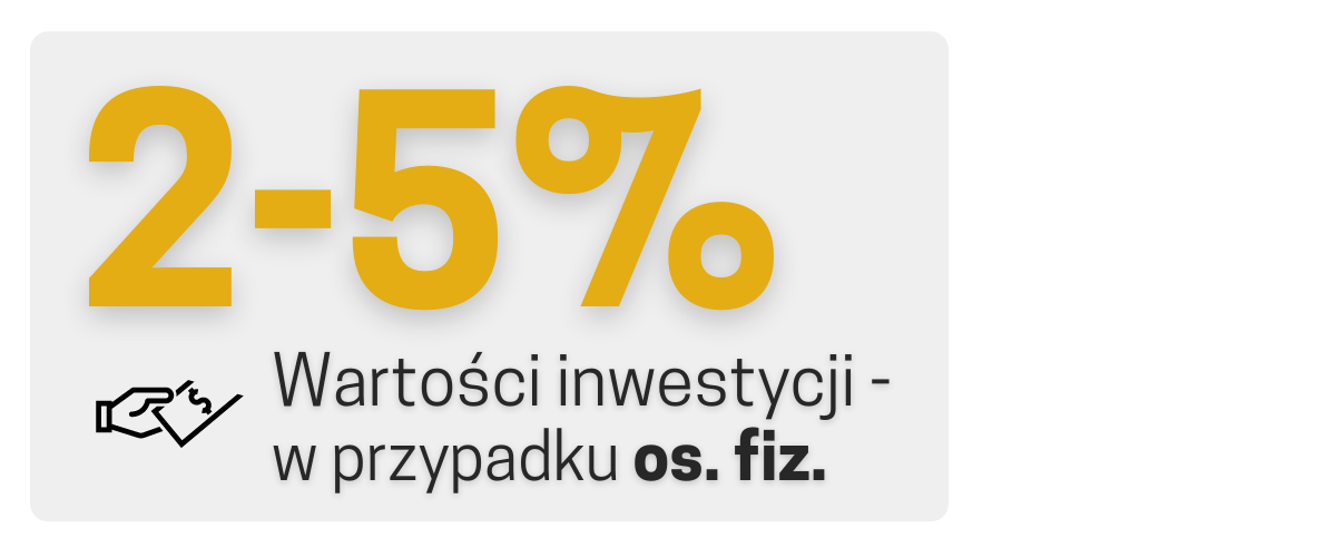 Natomiast jeśli decydujemy się na osobę fizyczną to koszt jest w granicach 2-5 % wartości inwestycji.