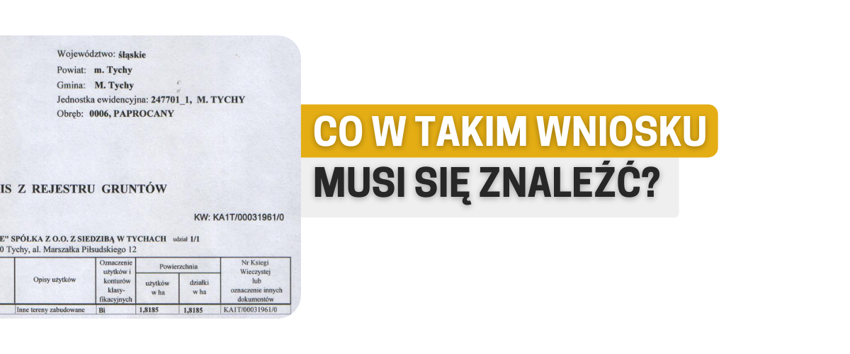 Aby uzyskać wypis / wyrys z rejestru nieruchomości musimy złożyć wniosek do urzędu miasta lub starostwa powiatowego. Wniosek można złożyć: