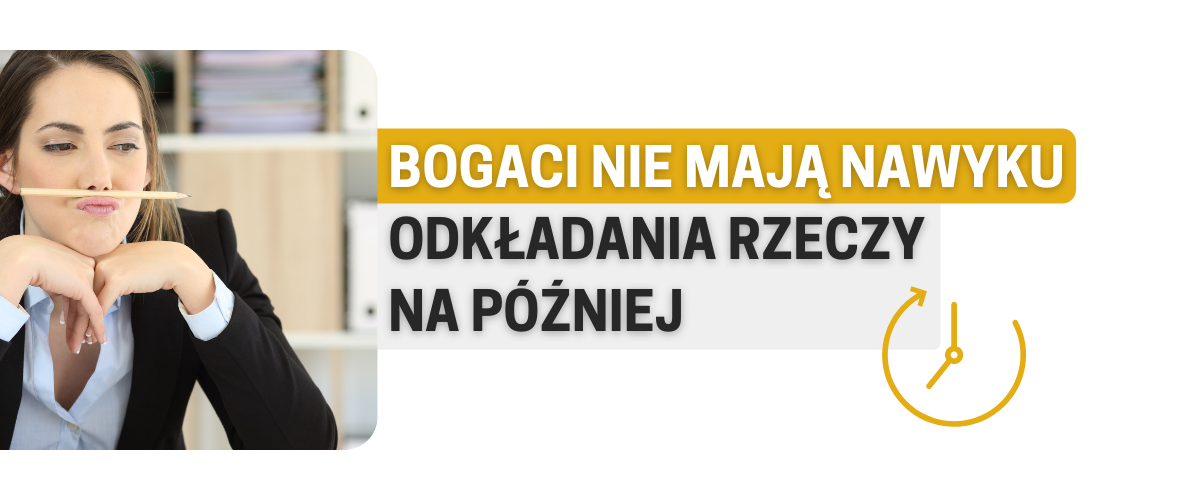 - Nawyki bogatych ludzi: bogaci ludzie nie mają nawyku odkładania rzeczy na później
