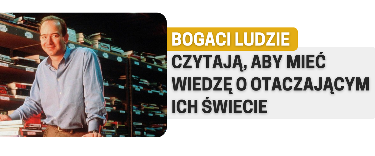 Bogaci ludzie mają nawyk, by czytać przynajmniej 30 minut dziennie. Czytają bardzo różne rzeczy. Dowiadują się o bieżących wydarzeniach z gazet lub portali informacyjnych, ale też zagłębiają się w biografie ludzi sukcesu.